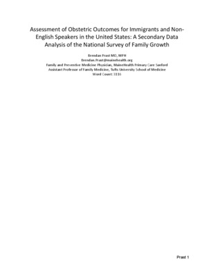 Assessment of Obstetric Outcomes for Immigrants and Non-English Speakers in the United States: A Secondary Data Analysis of the National Survey of Family Growth